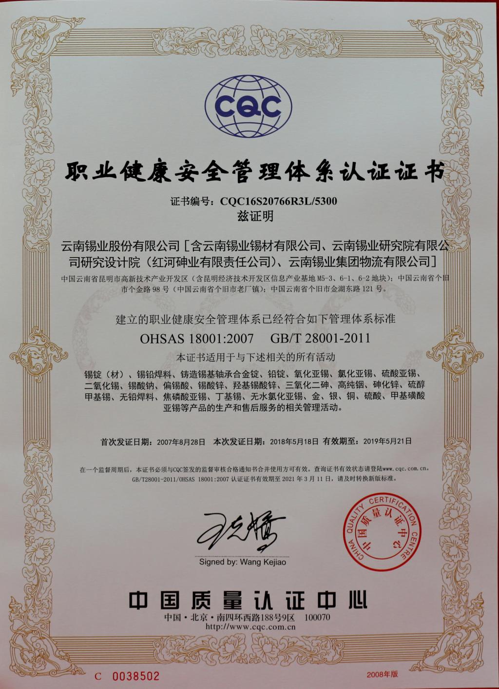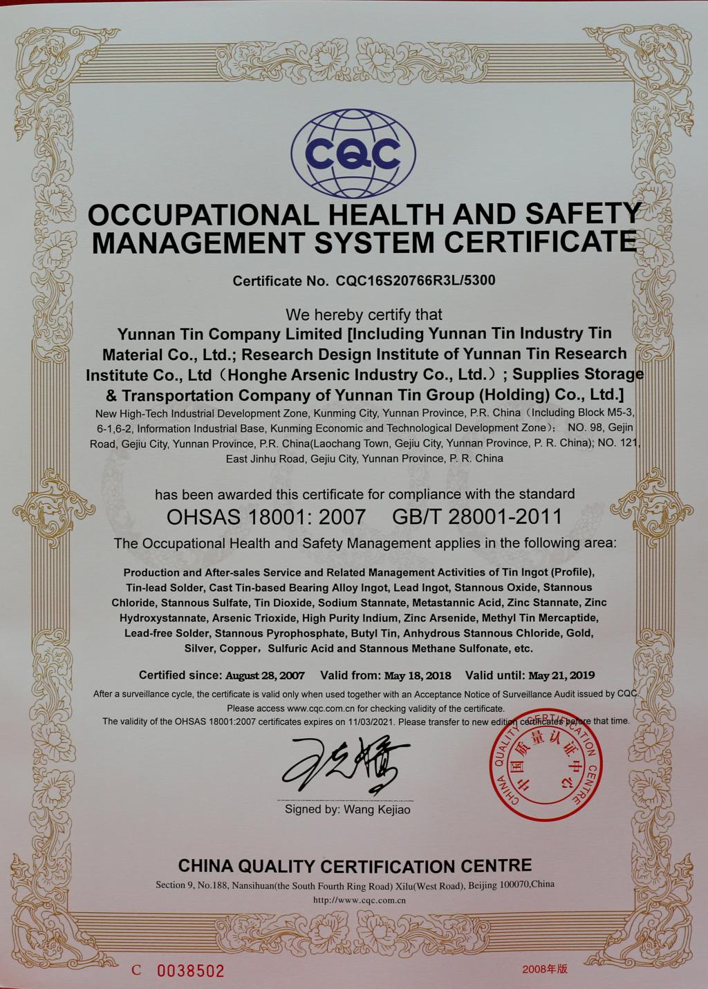 CQC職業(yè)健康安全管理體系認證證書 (英文)