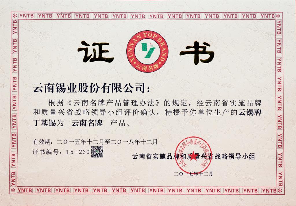 硫酸亞錫、錫酸鈉為云南省著名商標