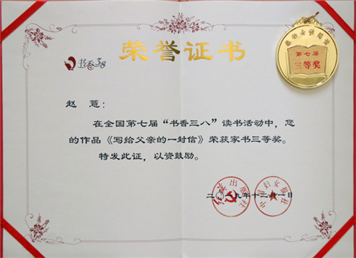 全國第七屆“書香三八”讀書活動啟動后,冶煉分公司工會高度重視,以“爭做讀書先鋒·逐夢幸福云錫”為活動主題,將讀書活動與提升女職工素質緊密結合、與引導女職工崗位建功緊密結合,廣泛動員女職工積極參加讀書活動。讀書活動得到了全司廣大女職工的積極響應和熱情參與,冶煉分公司工會在對征集到的44篇作品審核的基礎上,向控股公司選送了7篇作品參賽。經全國“書香三八”讀書活動組委會評審,冶煉分公司女職工趙薏的作品《寫給父親的一封信》榮獲家書三等獎,周波的作品《當我開始愛自己》榮獲征文優秀獎。