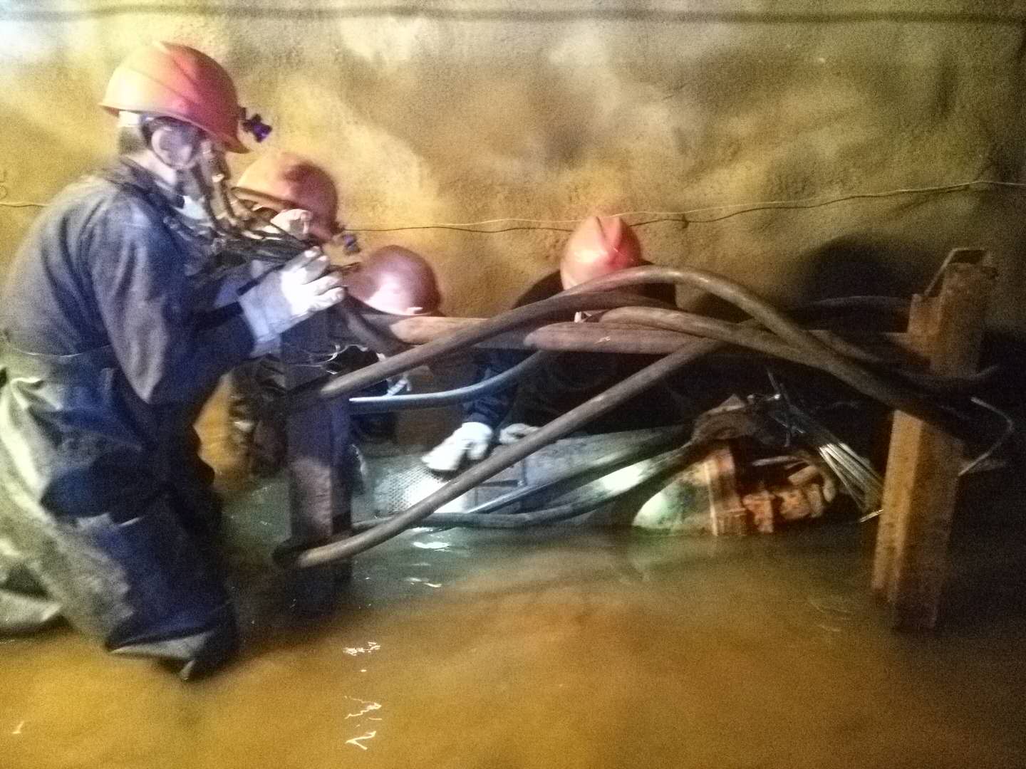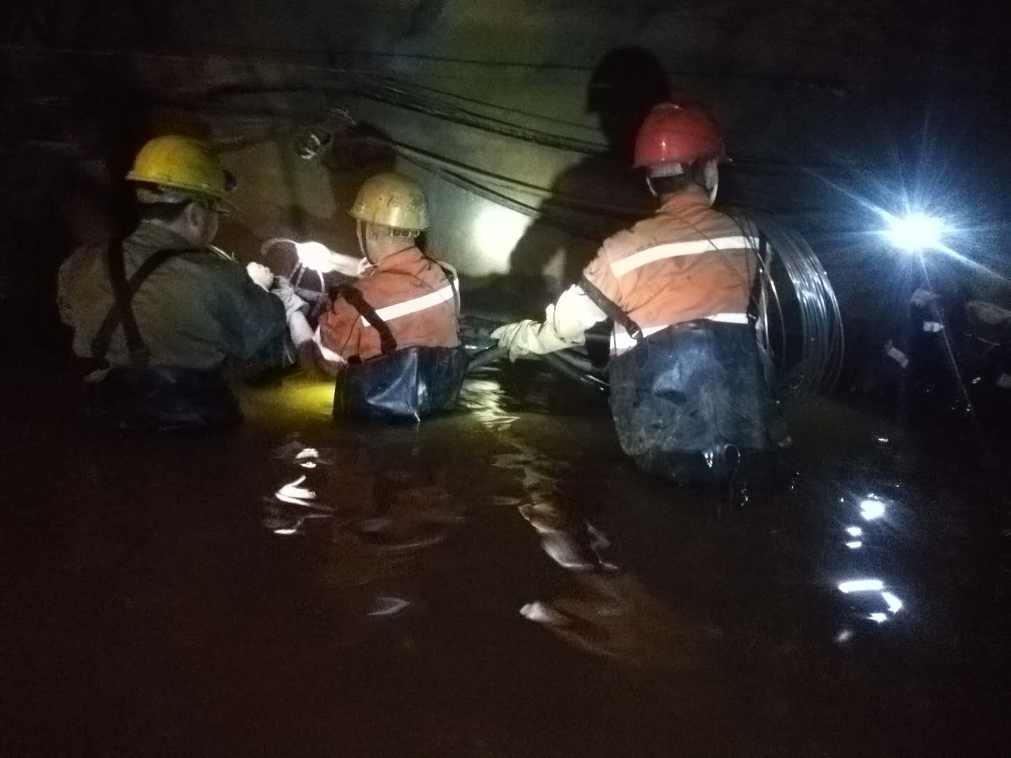 1700米中段,2公里多的上班路變成了一片汪洋,巷道、生產(chǎn)設(shè)備被洪水淹沒(méi)。由于水流湍急,水位持續(xù)上漲,救援搶險(xiǎn)工作進(jìn)展緩慢。危難關(guān)頭,干部職工脫下身上的衣物,就淌進(jìn)了齊腰深的洪流中,一路摸索前行,設(shè)法向生產(chǎn)設(shè)備靠近,最終將被淹沒(méi)的設(shè)備搶救出來(lái)。