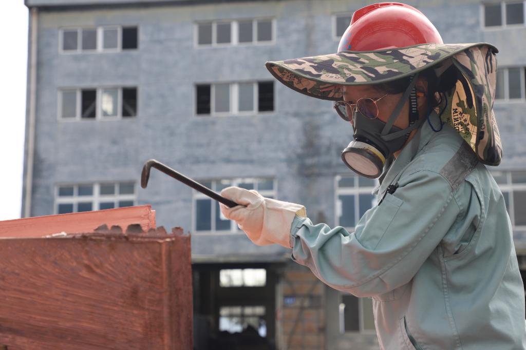 在一頂頂特殊的安全帽下,是一張張掛滿汗珠的臉龐;拉開口罩、取下護目鏡,個個都是溫柔的動人笑臉。她們每天與陰極銅板打交道,在產品運輸區域經受著風吹日曬雨淋,每人佩戴的特殊安全帽因此而來,是質監中心為了緩解每天八小時的戶外暴曬對姑娘們皮膚造成的傷害,踐行“我為群眾辦實事”承諾的體現,也成為了銅業分公司質量監測中心檢驗三組的標志。