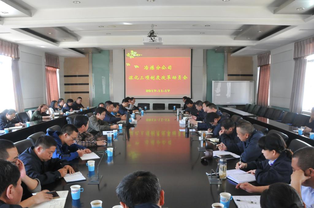 深化人事、勞動和收入分配“三項制度”改革是企業自身轉型發展的內在要求,也是增強企業活力和競爭力,提升管理水平,促進企業持續健康發展的重要舉措。2017年11月17日,冶煉分公司召開“三項制度”改革動員大會,領導班子運籌帷幄,布局落實,按照依法依規、逐步推進和公開、公平、公正的原則,對黨委工作部、人力資源部、電爐車間等部門車間進行職能合并或撤銷建制,力求在優化組織人力資源配置、激活內部潛力上謀求新突破,在整合組織機構、形成企業員工利益共同體上展現新作為,在推進薪酬分配改革、健全完善體制機制上激發新活力。