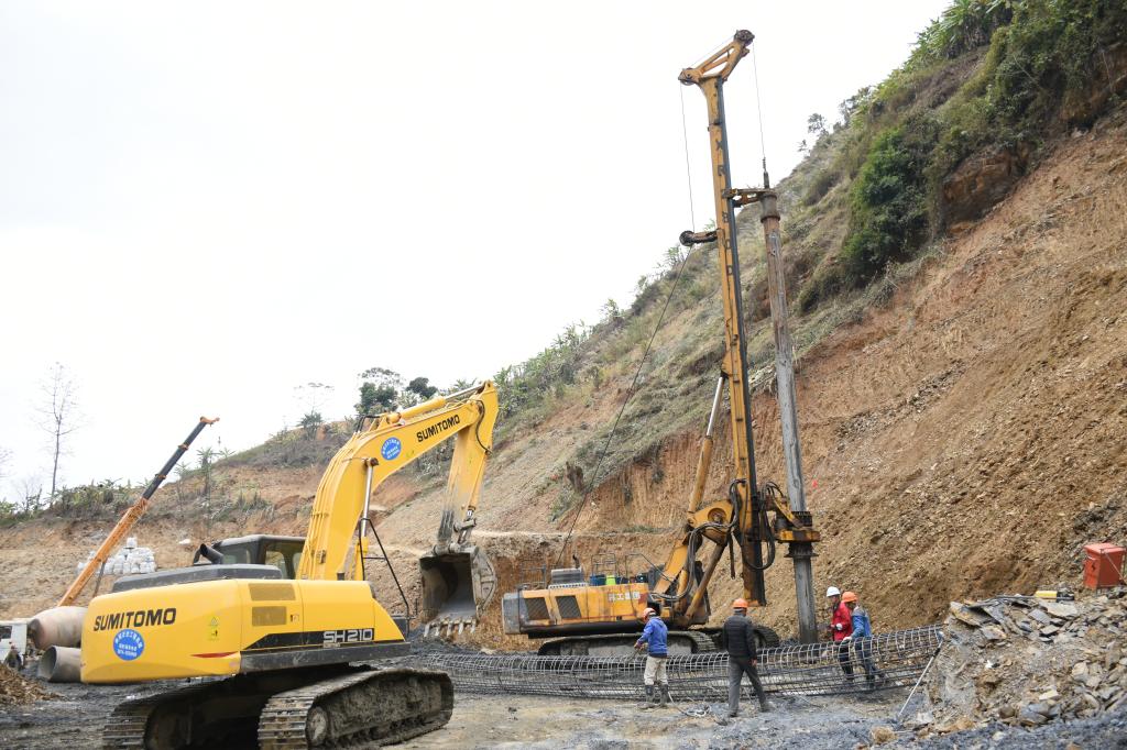 從卡房驅(qū)車沿著崎嶇的個(gè)金公路向下行駛,穿過田心、斗姆閣等村莊,經(jīng)過1個(gè)多小時(shí)的顛簸,便可到達(dá)海拔500米左右的象沖尾礦庫工程項(xiàng)目部。