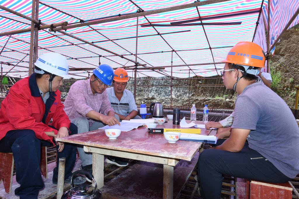 他們掐著時(shí)間和雨天賽跑,加快“活要干在下雨前”的步伐。在建設(shè)庫內(nèi)排洪隧洞時(shí),由于電力不足影響施工,項(xiàng)目部的兄弟們自發(fā)去幫助架接電纜,在傾盆爆雨中一人打傘,一人挖坑,時(shí)不時(shí)還摔上一跤,等到電纜接好時(shí)大家都成了泥人。