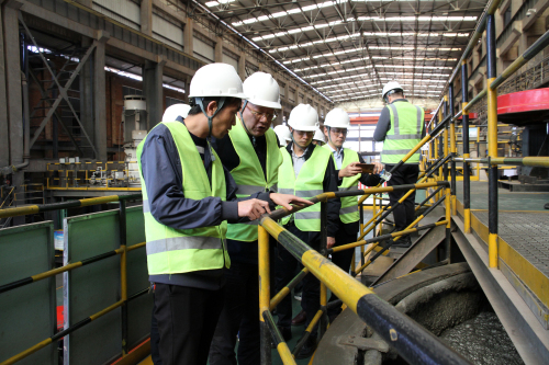 在選礦車間,大屯錫礦副經(jīng)理莫峰熱情接待了到訪的來(lái)賓。經(jīng)過(guò)入廠安全培訓(xùn)之后,來(lái)賓們進(jìn)入了秩序井然的生產(chǎn)車間,選礦車間的陪同人員介紹了車間的產(chǎn)能、工藝流程、科技創(chuàng)新等方面情況,在聽取介紹和實(shí)地參觀后來(lái)賓們對(duì)于規(guī)范整潔的作業(yè)環(huán)境給予了充分肯定,而大型化、自動(dòng)化設(shè)備的廣泛運(yùn)用也給他們留下了深刻的印象。