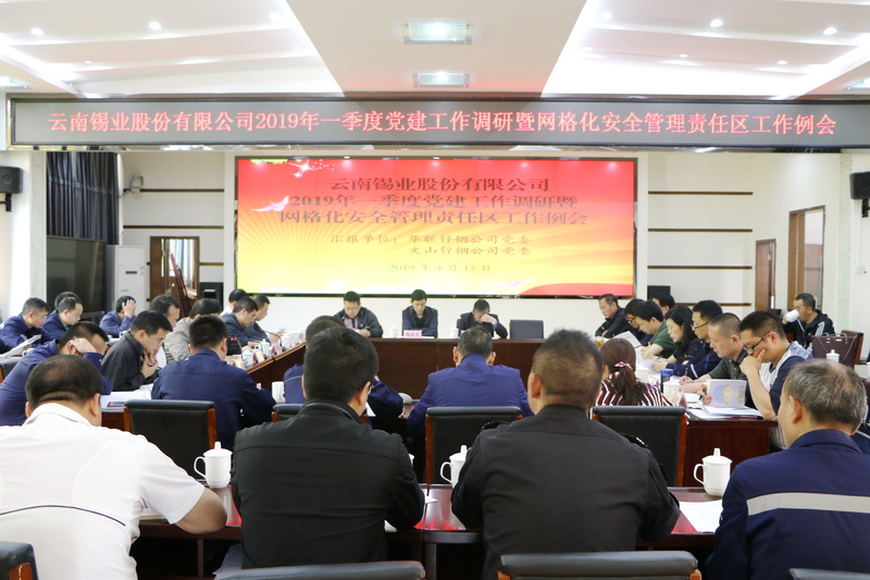 4月16日—17日,控股公司黨委常委、副董事長、錫業股份總經理楊奕敏率隊調研華聯鋅銦、文山鋅銦兩家單位一季度黨建工作和網格化安全管理責任區工作,華聯鋅銦、文山鋅銦黨委書記、董事長牛輝陪同調研。