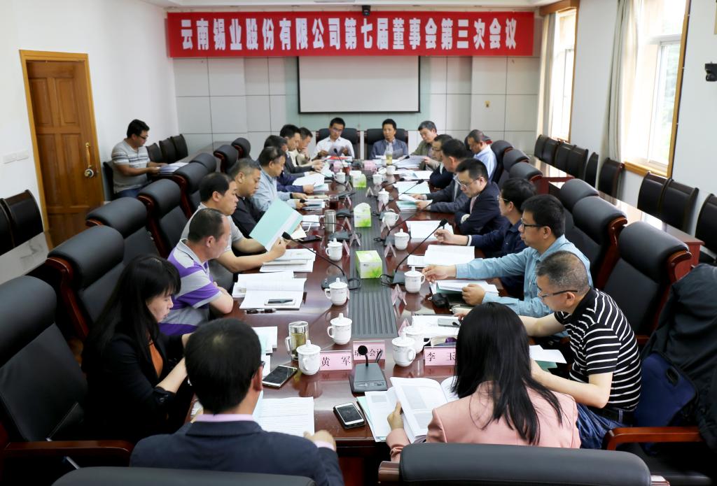 云南錫業(yè)股份有限公司第七屆董事會(huì)第三次會(huì)議于2018年4月25日在公司四樓一會(huì)議室以現(xiàn)場(chǎng)記名投票表決方式召開。公司董事會(huì)由10名董事組成,出席會(huì)議董事7名,由于工作原因無(wú)法參加本次董事會(huì)的3名董事分別委托董事會(huì)成員參加并代為行使表決權(quán)。公司董事長(zhǎng)湯發(fā)主持會(huì)議。