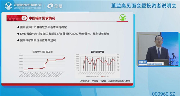 公司董事、副總經(jīng)理吳建勛介紹了錫行業(yè)和市場(chǎng)的相關(guān)情況。