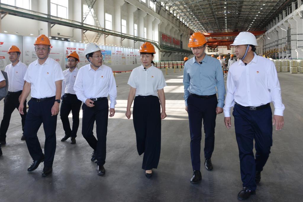 調(diào)研中,羅萍一行走進(jìn)錫業(yè)分公司精煉車(chē)間錫錠自動(dòng)化生產(chǎn)現(xiàn)場(chǎng),詳細(xì)了解錫冶煉生產(chǎn)經(jīng)營(yíng)、安全環(huán)保、提能擴(kuò)產(chǎn)、科技研發(fā)、能源供應(yīng)等情況,并認(rèn)真聽(tīng)取云錫“精深加工延鏈、綠色智能補(bǔ)鏈、改革創(chuàng)新強(qiáng)鏈”發(fā)展理念及生產(chǎn)經(jīng)營(yíng)過(guò)程中面臨的困難問(wèn)題,與企業(yè)共同商討解決對(duì)策。