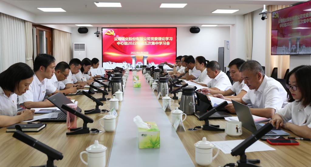 8月30日,錫業股份黨委理論學習中心組2022年第五次集中學習會在昆明總部5樓會議室召開,深入學習貫徹習近平總書記關于黨風廉政建設和反腐敗工作的重要講話精神及安全生產重要論述,增強自我約束和拒腐防變能力,守住安全生產紅線底線,全面構建風清氣正良好政治生態,持續推動錫業股份全面從嚴治黨和安全生產工作向縱深發展。