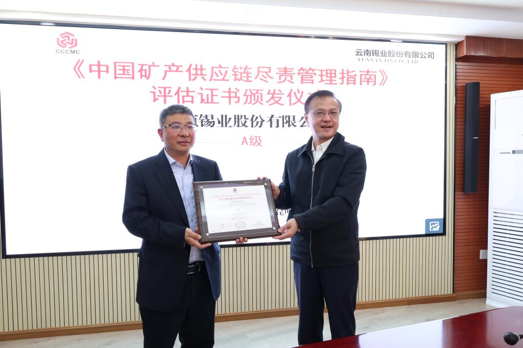 中國五礦化工進(jìn)出口商會為錫業(yè)股份頒發(fā)《中國礦業(yè)供應(yīng)鏈盡責(zé)管理指南》評估證書