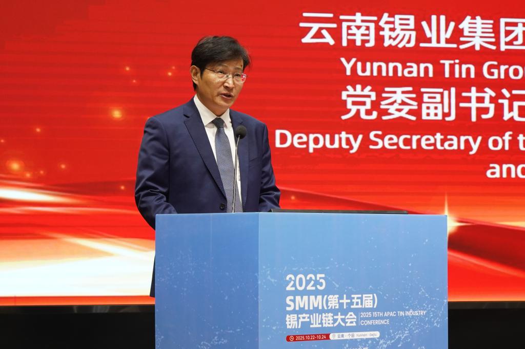 10月22日至24日,2025SMM(第十五屆)錫產業鏈大會在個舊舉行,本次大會由上海有色網主辦,錫業股份特邀協辦。云錫控股公司黨委副書記、副董事長、總經理韓守禮出席大會并致開幕詞。錫業股份黨委書記、董事長劉路坷參加開幕式并與多家企業與會代表交流。