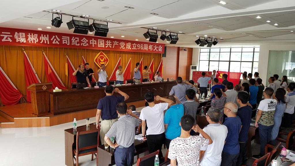 在中國共產黨建黨96周年到來之際,錫業股份所屬單位黨委組織廣大黨員開展形式多樣的紀念活動,牢記使命,不忘初心,砥礪前行,以良好的精神風貌迎接黨的十九大勝利召開。