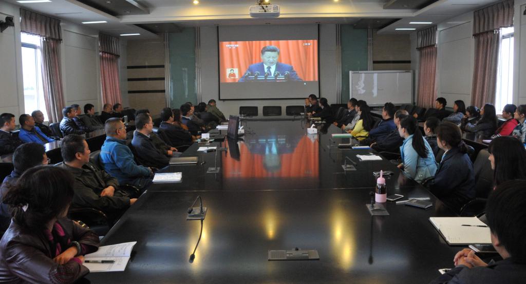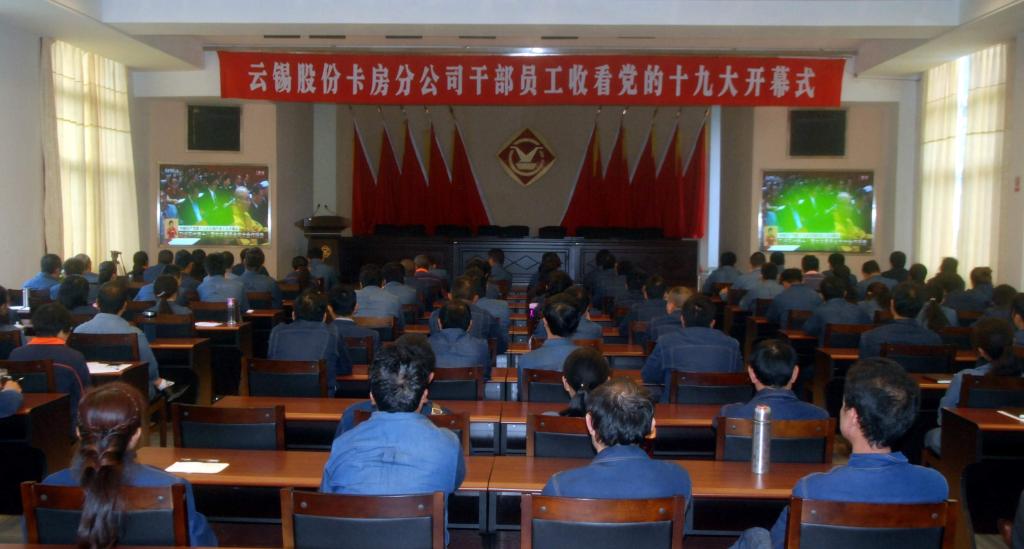 云錫控股公司和錫業(yè)股份機(jī)關(guān)黨員干部職工260余人在云錫賓館報(bào)告廳進(jìn)行了集中收看。兩級(jí)公司領(lǐng)導(dǎo)班子成員與干部員工一起收看了黨的十九大開幕會(huì)盛況。