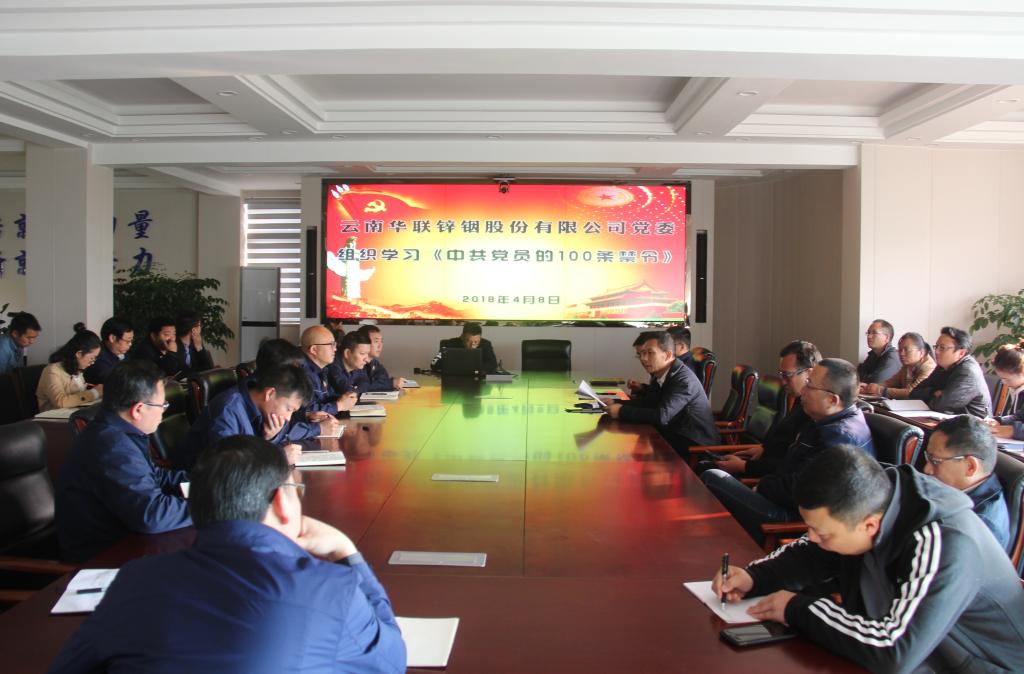 4月8日,華聯鋅銦公司黨委召開黨委擴大會專題學習《中共黨員的100條禁令》,公司領導班子成員、各車間部門負責人參加學習。