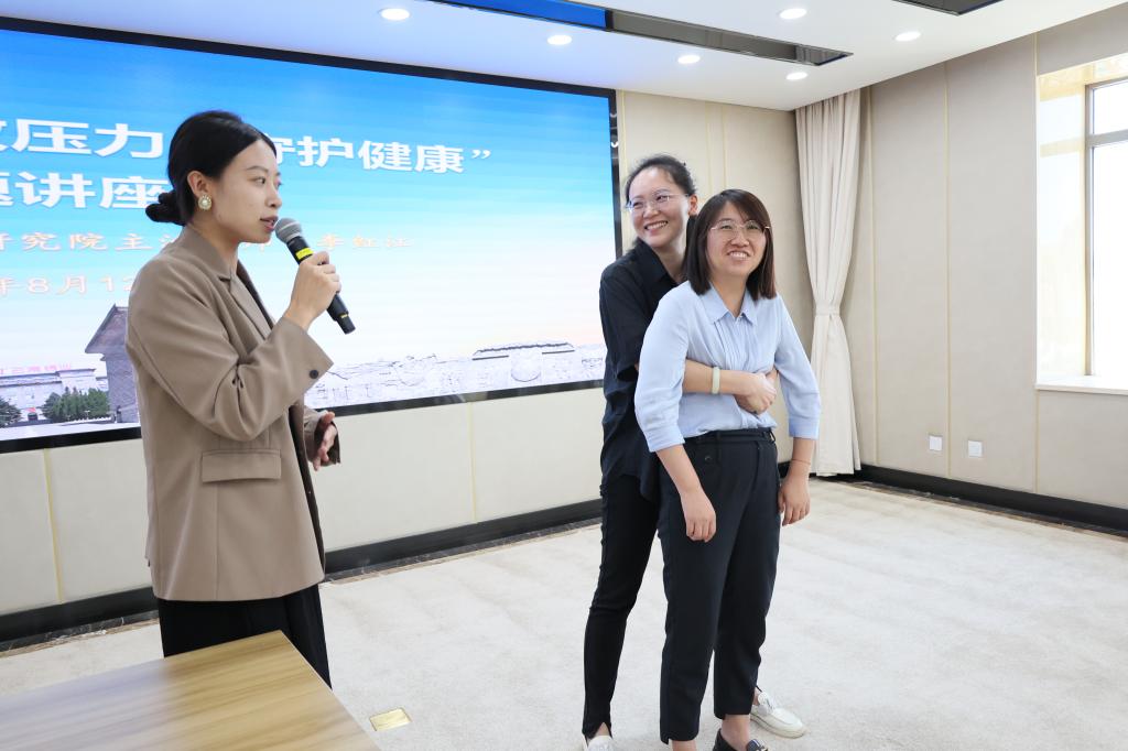 中醫康復研究院主治醫師李紅江圍繞順應春夏秋冬四時養生、日常穴位按摩保健、職場常見肩頸腰椎疼痛護理、高血脂高血糖高血壓基礎病預防、心梗腦梗應急處理等方面進行授課;針對如何把握“黃金時間”進行有效應急救護,現場演示海姆立克急救法、心肺復蘇等急救措施。