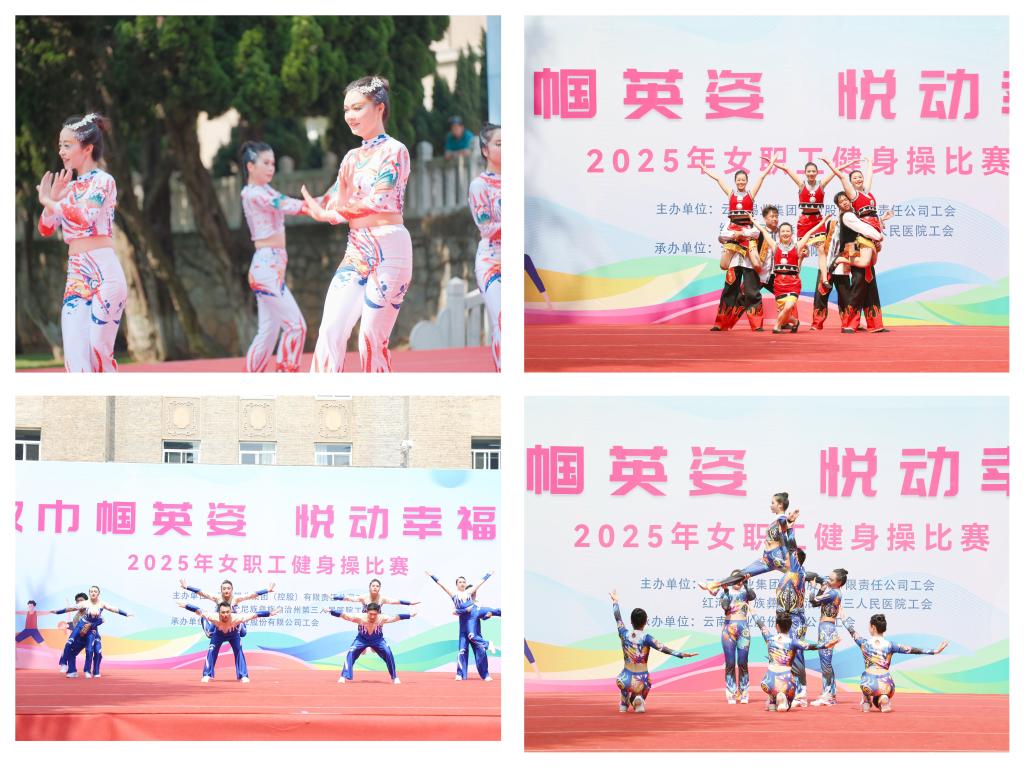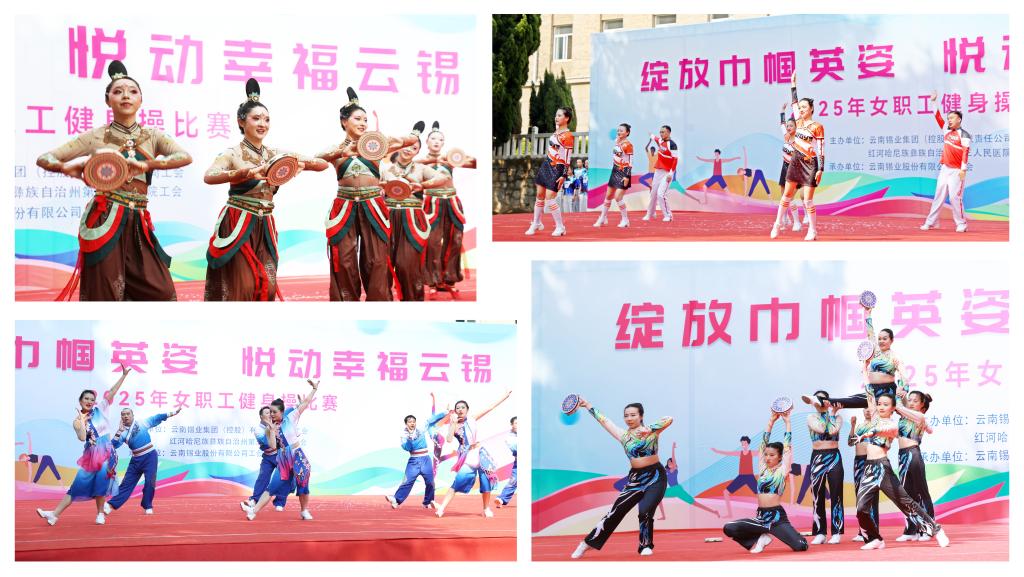 賽事設(shè)置民族健身操規(guī)定套路《同心共筑中國(guó)夢(mèng)》及自編有氧健身操兩大項(xiàng)目。各參賽隊(duì)伍身著統(tǒng)一服裝,精神抖擻,依次登臺(tái)亮相。在第一輪規(guī)定套路比賽中,各隊(duì)把動(dòng)感十足的現(xiàn)代健身操與民族特色元素融合創(chuàng)意編排。伴隨著歡快的音樂(lè)節(jié)奏,選手們伸展、跳躍、旋轉(zhuǎn),動(dòng)作流暢自然,充滿(mǎn)力量感與節(jié)奏感,用靈動(dòng)的舞姿和自信的笑容,詮釋著對(duì)健身操運(yùn)動(dòng)的熱愛(ài),展現(xiàn)廣大云錫女職工積極向上、團(tuán)結(jié)協(xié)作的精神風(fēng)貌,充分詮釋巾幗風(fēng)采與健康云錫的主題內(nèi)涵。